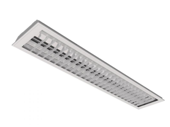 TIPO: Luminária de embutir alto rendimento com grades em aletas brancas.