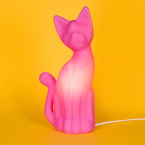 Impossível não se apaixonar por este gatinho lindo e simpático, que é um dos maiores sucessos da Diamante do LED. Pequeno, magricelo e sorridente, ele fica uma graça no chão ou como abajur de mesa.