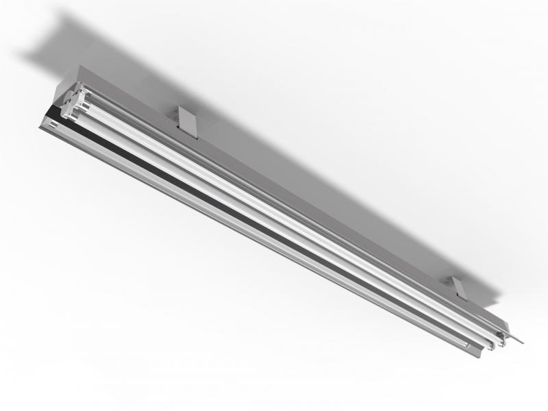 CORPO: Chapa de aço fina frio, tratada quimicamente. Pintura eletrostática, com tinta poliéster na cor branca. Com posicionamento das lâmpadas em linha. Com alojamento para driver ou reator.