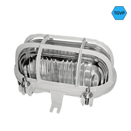 Luminária de sobrepor à prova de tempo, gases, vapores, pós e jatos d’água para uso de lâmpadas LED, mista, fluorescente compacta, halógena ou incandescente.