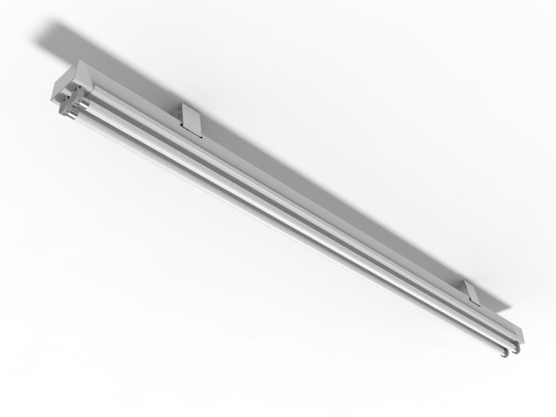 CORPO: Chapa de aço fina frio, tratada quimicamente. Pintura eletrostática, com tinta poliéster na cor branca. Com alojamento para driver ou reator. Com posicionamento das lâmpadas normal e contínua.