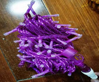 CARACTERÍSTICAS: - Código: 89197.- Quantidade de LED: 100 LEDS.- Voltagem: 220V.- Potência: 10 Watts. - Cor do LED: Roxo.- Cor do Fio: Roxo.- Comprimento: 10 Metros.- Conector: Macho / Femea.- Vedação: IP65.