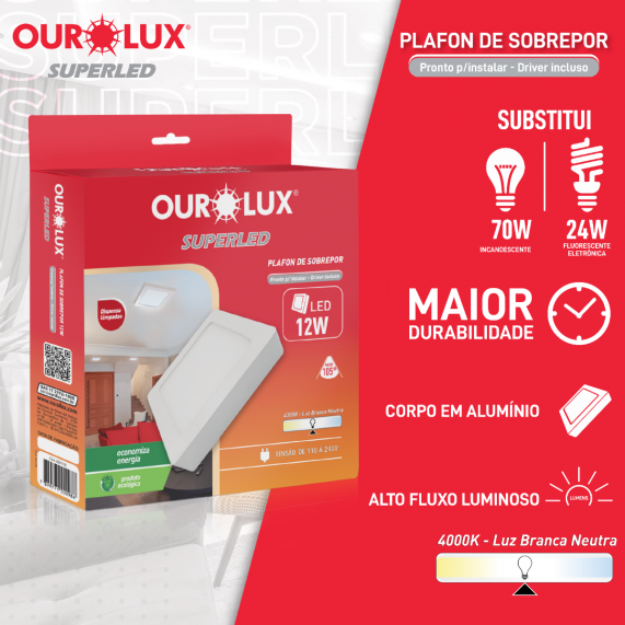 Formato do Corpo: | Luminária Sobrepor Quadrada |